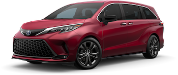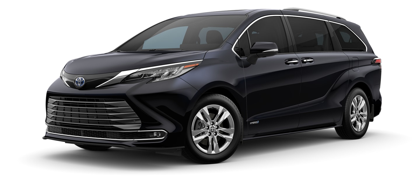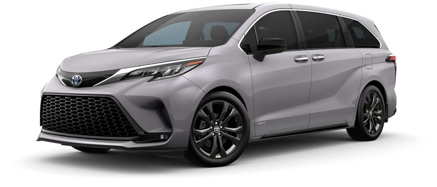 Find a new Toyota minivan that matches your personality. The upscale Toyota Sienna offers a sleek and aerodynamic profile. Toyota accented the Sienna with bold paint finishes and the option of a honeycomb grille, 20-inch dark wheels, and roof rails.